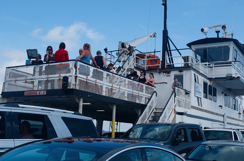 A big late summer crowd aboard Cape Point on their way to Ocracoke Island for the day. We were aboard Chicamacomico on the opposite run. During tourist season the boats on the Ocracoke - Hatteras route don't adhere to schedule, turning around as fast as they can discharge and reload at the terminals.